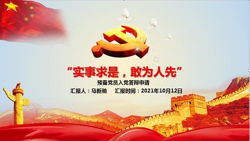 2021年10月1219时,本科应化党支部在腾讯会议上召开了预备党员转正会议。本次会议主要讨论马新驰同志转正事项马新驰同志于2020年9月28日入党,目前预备期已满且提出书面转正申请。按照接收预备党员程序支部支委同意转正召开支部党员大会。会议由党支部副书记王元主持,党支部全体党员参与。