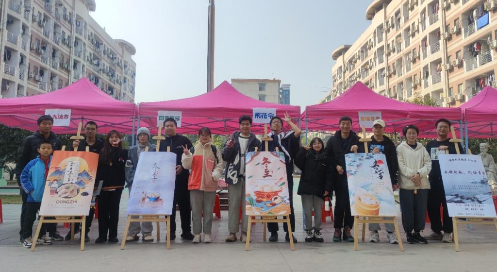 本次冬至文化节室外部分包括四个活动——“九九消寒”谐音大挑战、“冬日飞花令”闯关赛、“问寒送暖”爱心活动和“言暖冬季”祝福交换活动。同学们开动脑筋,说出带“九”谐音的谚语、成语、歇后语和冬季主题的古诗词进行闯关挑战并赢得纪念礼品,活动气氛热烈,现场欢声笑语不断;“问寒送暖”爱心活动呼吁广大同学将闲置的冬季衣物收集起来,由工作人员无偿捐赠给公益项目,帮助困难群体,同学们积极参与,纷纷慷慨捐赠;在“言暖冬季”活动中,同学们在贺卡上为陌生人写下暖心祝福投入到贺卡箱,并从贺卡箱中随机抽选一张其他同学写的祝福贺卡,传递温暖与友爱。