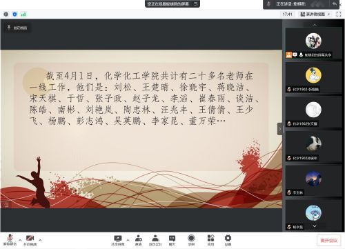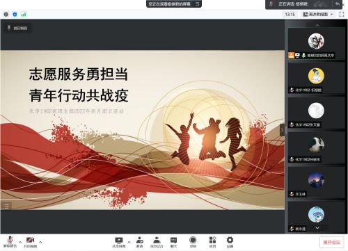 为学习此次校园疫情防控中的典型青年人物,树立同学向榜样看齐的意识,化学1902班于2022年4月18日晚8点,以腾讯会议的形式举办主题团日活动。本次活动由王鹏棋同学主持,化学1902班全体成员参与。