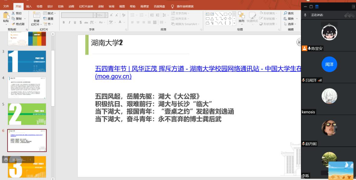 。这些生动鲜活的例子就发生在湖大校园里,让同学们为他们身上的青年精神所感动。