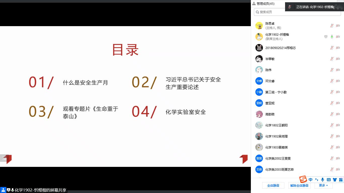 为提高党员的安全意识,本科化学党支部于6月8日晚9点举办了主题为“遵守安全生产法,当好第一责任人”的党日活动,本次活动由支部宣传委员忻煜楷主持。