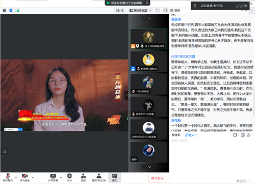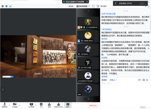 2022年5月4日,习近平总书记发出了当代青年要在实现民族复兴的赛道上奋勇争先的号召。如何在复兴赛道的方向上去探访远方的理想?为了寻找这一问题的答案,本科化学党支部于7月14晚8点,以腾讯会议的形式共同观看《远方——在复兴的赛道上》。本次党日活动由党支部副书记付于芯主持。