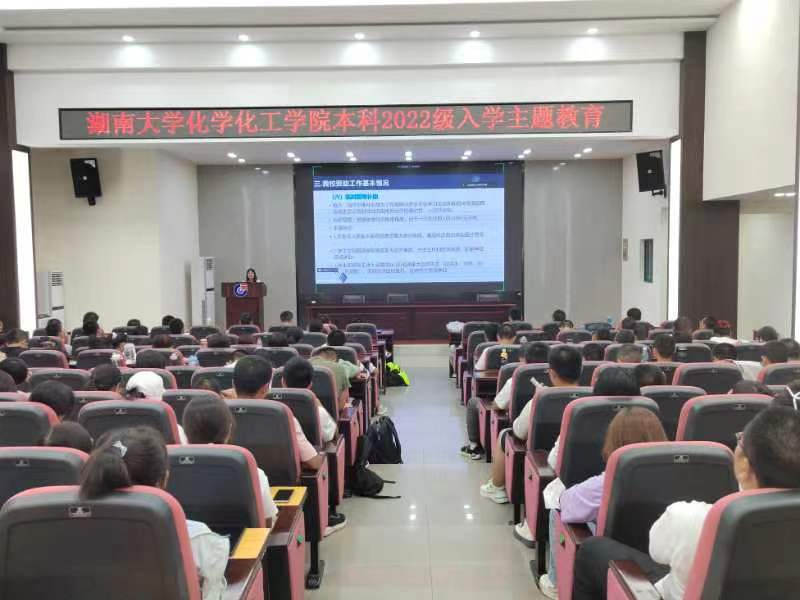 组织本科2022级全体新生于新化工楼D区开展资助政策宣讲,主讲人为读漫屋