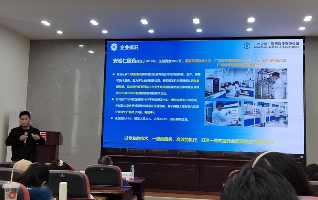 和日本静冈理工科大学的求学经历,介绍了创新药物研发的意义、药物研发的过程以及广东东阳光药业的部分药物研究成果,并鼓励同学们勇于担当,学成本领,为社会发展贡献青春力量。谢德逊学长则分享了在求学、创业过程中的趣事,着重讲述了与母院与恩师之前的深厚情感。两位学长的报告幽默风趣,相互承接,将自己的宝贵经验转化成同学们的成长指引。
