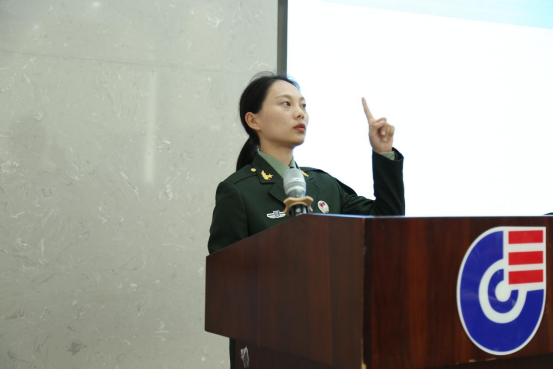 柴永琪同学则着重分享了她的两年军旅生活。她用细腻的语言描绘了部队中的日常训练、生活点滴以及在艰苦环境中磨砺出的坚强意志。她讲述了如何从一个青涩的大学生逐渐成长为一名坚韧的军人,其中的故事充满了感动与力量。同学们仿佛跟随她的讲述,一同走进了那充满热血与激情的军营。