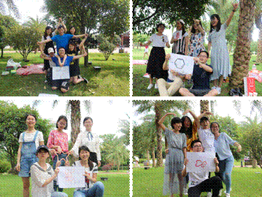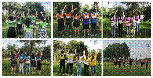 6.6是一个很漂亮的日子,也是这半个月来的第一个晴天,虽然太阳毒了一些,但活动开始之后,大家的热情却没有丝毫的衰减。活动分为动静结合的五个环节:“战队创意大比拼”、“手脚游戏”、“我的自画像”、“背夹气球”、“撕名牌”。