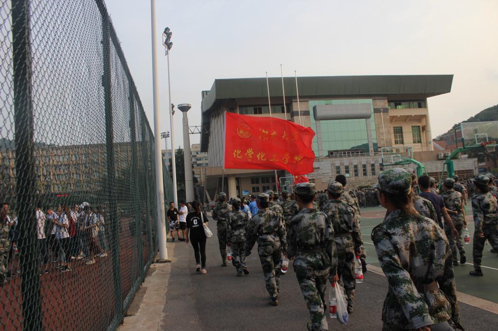 早上六点四十分,新生们准时在天马二区篮球场集合完毕,整装待发。来到操场后,同学们迅速组成方阵队形,进入操场待命。很快,大会正式开始,升国旗,奏唱国歌,全体肃立。化工院的新生们也昂首挺胸,用最富有朝气的姿态,展现出他们如军人般的气质。紧接着,迎校旗等一系列准备工作完成后,新生们迎来了最后的检阅。