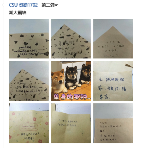 活动主要借助中南资勘2班的宣传公众号,完成对活动的介绍和实施细则的发布,并由各班班委转发到各班并完成心愿纸条的发放。待大家心愿和情诗写完后,又由各班委收齐后汇总,选择并进行排版后在宣传频道进行宣传。