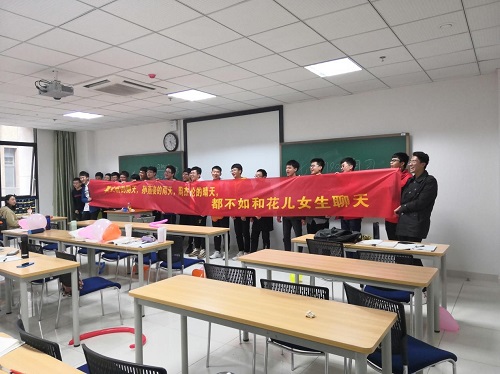 上周,化学1802班的男生们,给了正在自习课上埋头学习的女生们一个惊喜,2019年的3月7日成为了化二班的女生们在大学里度过的第一个女生节。奶茶、横幅以及手写的祝福便签,化二班的小哥哥们忙碌了一个自习,气球吹了一地,终于在下自习之前给女生们送上了祝福。女生们震惊之余,更多的是被人惦记的感动。藏在诸多气球中的小纸条也为这次节日的庆祝活动增添了些许新意。
