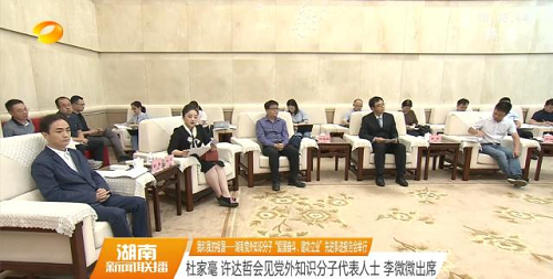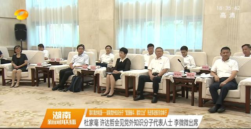 9月23日,“我和我的祖国——湖南党外知识分子‘爱国奋斗、建功立业’先进事迹报告会”在长沙举行。会前,湖南省委书记杜家毫,省委副书记、省长许达哲,省政协主席李微微会见了出席报告会的党外知识分子代表。我校谭蔚泓院士、聂舟教授和何凤姣教授参加了会见。