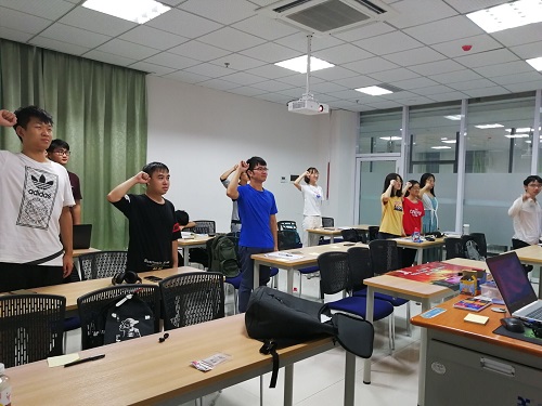 太阳微微下山,下午19时活动正式开始。活动第一项是欣赏爱国歌曲《祖国》,这首富有美好寓意的歌曲为整个团日活动营造了浓厚的爱国气氛,让大家在活动之初便明确了本次团日活动的意义。歌曲结束后,石家豪同学为班级同学介绍了黄大年,王硕威等优秀前辈的故事,以激励大家向前辈们学习,这两位令人敬佩的前辈均是为新中国建设做出了卓越贡献的人民英雄。活动的第三项为观看纪录片《他们正在改变中国》。这部令人震撼的纪录片,使同学们了解了许多成功企业家创业背后的心路历程。这部纪录片让同学们在更加广阔的视野下见证了国家的发展,深刻的认识到自己身上担负的时代重任。观看结束后,在团支书石家豪同学的带领下,大家集体重温入团誓言,这一过程让大家深刻的意识到自己身上的责任与使命。