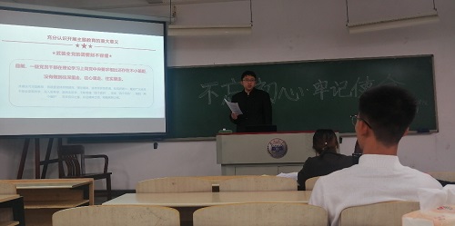 活动在王进博同学的主持下开展,王进博同学表示:“不忘初心,牢记使命”主题教育活动,是新时代加强思想教育建党、理论强党,推动全党深入学习习近平新时代社会主义思想的重要举措,为党团结带领全国各族人民为实现伟大梦想共同奋斗提供重要保障。