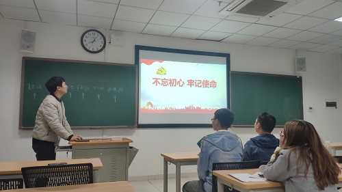 大会最后一项议程为党支部书记夏忠诚为全体党员进行“不忘初心、牢记使命”主题教育党课。夏忠诚从“不忘初心、牢记使命”的背景讲起,给全体党员详细阐述了本次主题教育的内涵、要求、背景和意义,强调了学生党员要加强思想理论学习,学深悟透,切身体会“为中为中国人民谋幸福,为中华民族谋复兴”这个共产党人的初心和使命的具体内涵。