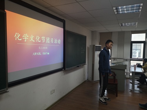 化工1803班的全体同学在综合楼509开展了以“化学文化节”为主题的团日活动。本次活动由团支书刘书畅同学组织开展,化工1803班全体同学参加。活动中大家积极参与,踊跃回答,气氛热烈。