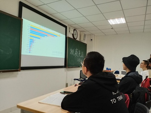 后,由团支书生江伊徽向大家展示了相关数据截至2020年11月5日,全国现存确诊病例仍有562例,境外外输入的病例高达3000多例。专家说,疫情的反弹极有可能发生,防控仍然任重道远。