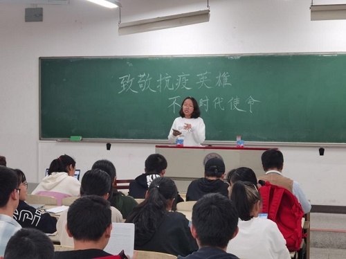化学类2003班全体成员于综合教学楼304教室举行“致敬抗疫英雄,不负时代使命”主题班会。班会由团支书李珂瑾主持。