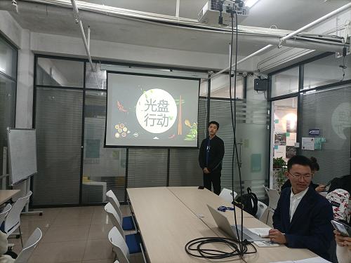 班会伊始,班长于浩洋同学就近期我校开展的光盘行动做了详细的介绍以及意义阐述,号召同学们积极参与光盘行动,并学习勤俭节约美德、拒绝铺张浪费行为。紧接着,于浩洋同学向同学们展示了舌尖上的浪费现象,以及校园里存在的浪费粮食行为,让同学们直观的体会到浪费积少成多的严重性。同时播放相关视频,同学们从视频中看到了农民种粮的不易与辛苦,更加凸现浪费行为的可耻。