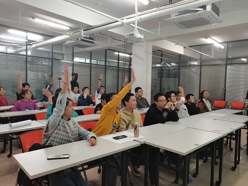 了解完结核病和艾滋病的相关知识,班会进入最后一项,有奖知识抢答环节。全班同学被分成五个小组抢答PPT的上问题。在主持人张佳伟同学的口令之下,同学们纷纷举手,展示着自己的所学所感,快速且准确地抢答着题目。答题前两名的小组也获得了小礼品作为奖励。