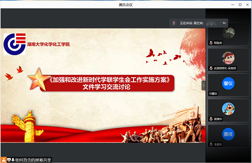 学生会于腾讯会议成功召开2020-2021学年秋季干部交流大会,大会总结了秋季学期学生工作,并对共青团中央办公厅和全国学联秘书处于近日印发《加强和改进新时代学联学生会工作实施方案》进行了学习。