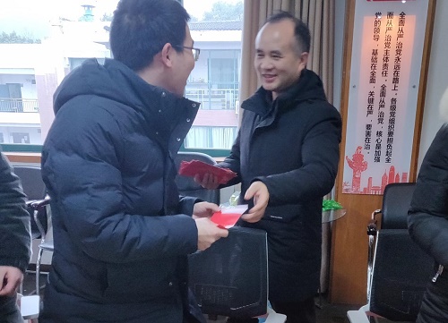 院党委书记王玉枝教授、院长张晓兵教授、党委副书记潘刚峰老师、学工办主任刘卓老师与21名留校学生召开座谈会,了解同学们寒假留校学习、科研与生活的状况,提醒同学们注意学校寒假留校管理要求,并向留校学生赠送新年礼品。
