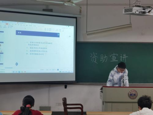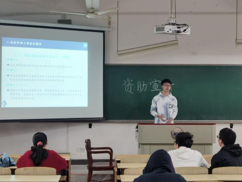 会议伊始,从光远同学向同学们讲解了资助工作背景以及本专科生教育阶段资助政策。“我们国家高度重视资助工作的发展与建设,设立了多项奖学金并建立了完善的资助政策体系。”从光远同学说道。本专科生教育阶段的资助政策包含了国家奖学金、国家励志奖学金等以鼓励成绩优异、品德优良的学生,同时还有国家助学金、国家助学贷款等政策用以帮助家境贫寒但励志求学的同学。