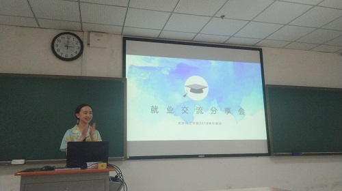 2018级开展了就业交流分享会,邀请了17级毕业生为同学们作专业对口就业和非专业对口就业以及选调生方面的经验分享。