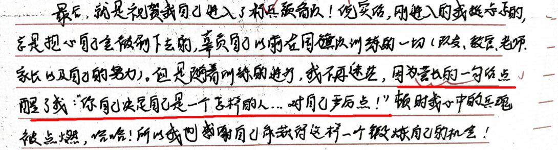 看看这十几天军训生活中,教官与班助们哪些话给大家留下了深刻印象,让大家都想写到军训日记里记录下来。