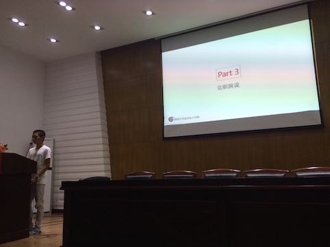 在班助们统计票数的期间,陈晓晖老师进行了对此次竞选同学们的表现做出了一系列的总结点评。他提出了一些中肯实用的建议勉励同学们,如形式不要太单一,可以开发更多的演讲形式,在演说中要注意眼神交流,以及职业匹配度这一概念等,这些都令在场同学深感受益匪浅。