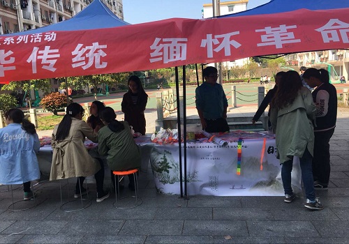 早上7点,负责各个园区摆摊宣传的同学集合完毕,奔赴各自的目的地,在迅速摆好摊位和拉上横幅之后,现场工作人员热情地向来往的同学介绍此项活动,在前期过微信推送、QQ转发、园区展示等多种形式的大力宣传下,此项活动得到了同学们的极大反响,吸引力了很多同学驻足摊前了解此项活动。同学们主动扫描二维码,关注了解革命先烈的故事,在故事中,同学们都有很多启发和感触,纷纷在公众号下留言,抒发各自的感想,缅怀英勇的革命先烈们,追忆他们的光辉热血事迹。在爱国精神的感召下,同学们受益颇多。