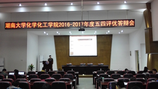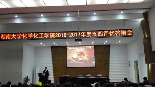 陈书记的致辞完毕后,李晨昕为大家宣读了答辩细则,之后引人注目的答辩环节正式开始。首先进行的是五四红旗团支部的答辩,八个团支部的答辩各有特色,主题鲜明,形式多样,语言生动,每个团支书结合精彩的PPT展示,彰显出别具一格的班级风采。其中应化1501团支部结合本专业特色,以实验报告的形式,从实验目的、实验原理、实验操作、成果展示等方面介绍了本班思想建设,学风建设等各方面成就。化工1602团支部则以自荐信的方式向大家娓娓道来班级从初遇,相识到共知的整个过程,温情而又不失新意,令人印象深刻。