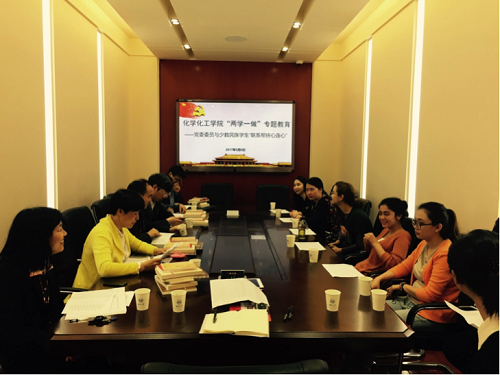 党委书记王玉枝教授等同志与学院新疆、西藏籍少数民族学生在一舍123会议室开展“‘两学一做’专题教育活动——党委委员与少数民族学生联系帮扶心连心”座谈会。座谈会由陈义红委员主持,8名少数民族同学参加。