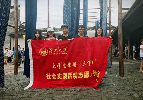 “几度蓝印花布梦”美丽中国社会实践团队来到了蓝印花布的原产地——桐乡市乌镇,通过对乌镇的蓝印花布产业进行实地调研,队员们对蓝印花布的生产、销售等有了全面的了解和认知。