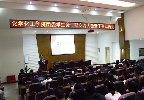 三十五届团委学生会第一次干部交流大会暨干事见面会于化工院D区报告厅顺利召开。党委副书记陈义红老师、17级辅导员曾芷兰老师、15级辅导员刘卓老师、14级辅导员南彬老师、16级辅导员刘王楚齐老师、研究生辅导员何妮翰老师及学生会年级会全体成员、各班班长团支书参加了会议。大会由学生会主席孙洋同学主持。