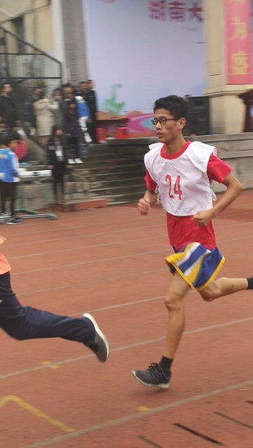 第十八届运动会正在体育场上举行。在经过跳绳,踢毽子等众多比赛后,同样备受瞩目,考验参赛选手超强耐力的男子5000米决赛拉开帷幕。17级的罗得存和16级的邓弘立等同学代表化学与化工学院参加了本次比赛。