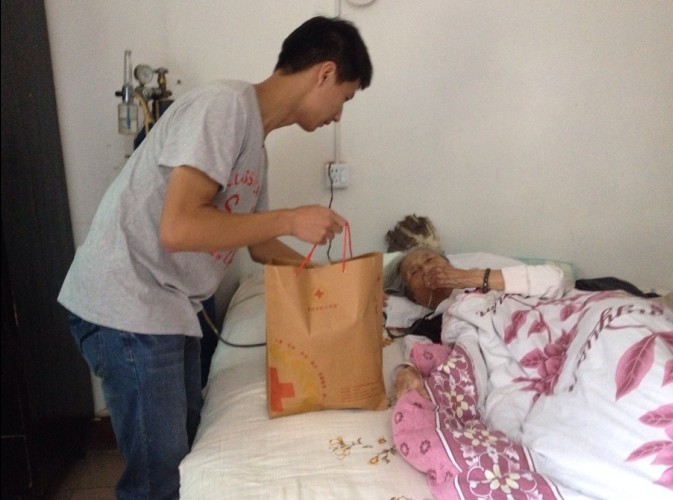 在干休所的大院里,化硕班的同学们扶着年迈的老红军到大院里欣赏由幼儿园的小朋友带来的精彩节目,席间还有两位百岁老红军和数位已过花甲的老红军,大家一起说说笑笑,欢声满堂。值得一提的是,十几位残疾的叔叔阿姨也参与了这次志愿者活动,在遇见同学们时,他们十分热情。同学们陪着他们聊天,推着轮椅陪他们看节目。他们的乐观,也深深地感动了大家。