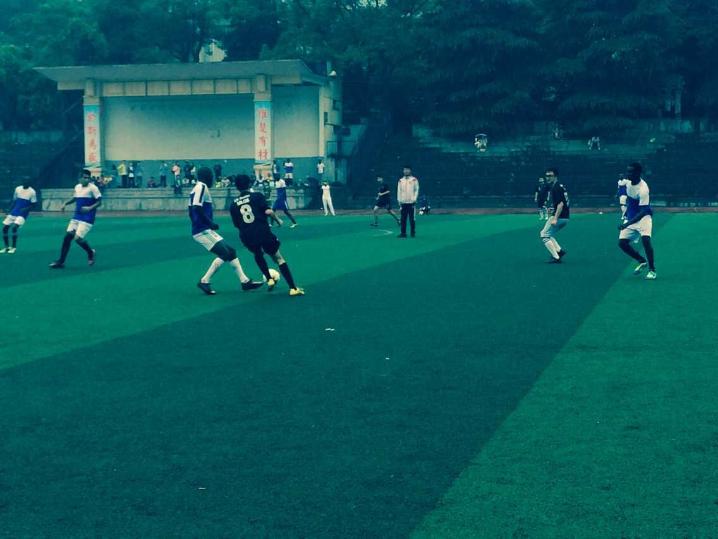 留学生组成的队伍在南校区足球场进行了为时俩个半小时的足球比赛。虽然天公不作美,雨时断时续,但这丝毫没有浇灭球员们的热情。俩对队员在比赛中全力拼搏,向前冲锋,都赛出了体育运动的精神。此次比赛最终以化工0:5不敌留学生结束。