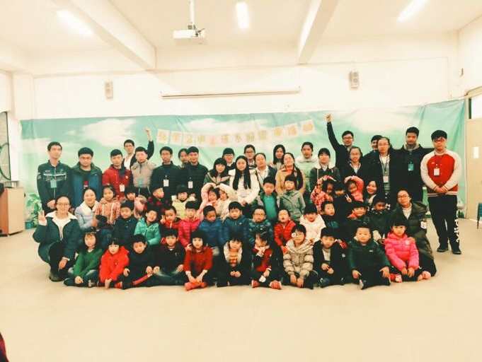 期盼、兴奋、甚至有些忐忑,同学们内心揣着复杂的心情在音乐室里打理场地。门外传来有些急促的的脚步声和银铃般清脆的欢笑,一张张洋溢的无邪纯真微笑的面庞出现在同学们眼前。在安排小朋友们坐下后,化学二班的同学们表演了排练已久的手语歌曲《虫儿飞》。