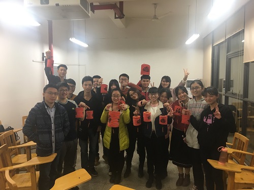 考虑到同学们不容易答对谜底,孟秋晗决定可以提供一次求助机会,同一组可以出一位同学获得谜底后用比划的方式让组员猜。王俊杰小组首先要求使用求助机会回答谜面为“泵”的灯谜,听到“水落石出”的谜底后王俊杰就一脸的纠结,其他同学们看着王俊杰手舞足蹈的比划都笑得前仰后合。活动就这样在欢笑中圆满结束,同学们在结束后拿着一只只红灯笼合影留念。