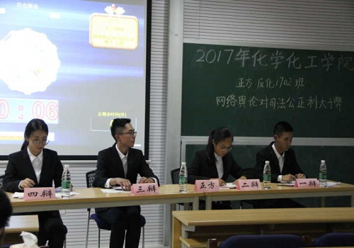 “新生杯”辩论赛的收官之战在研楼C202拉开帷幕。分别代表化学1703班和应用化学1702班参加比赛的辩论队经过层层选拔在八支队伍中脱颖而出,针对“网络舆论对司法公正是利大于弊还是弊大于利”的话题展开了激烈的辩驳。此次辩论赛请到了读漫屋