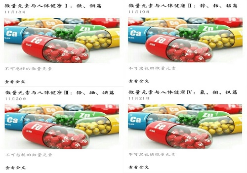 应用化学1601团支部于本学期第十周周一至周四利用“应一正能量”公众号这个平台连续推出四期推送。而推送的内容是以“微量元素与人体健康”为主题,向应化1601的全体同学普及了十一种微量元素在日常生活中的不可忽视性。