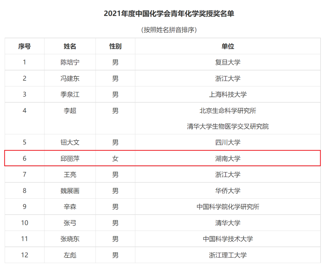 日前,中国化学会奖励工作委员会授予12位优秀青年化学工作者“2021年度中国化学会青年化学奖”。入选的唯一女性获奖人是读漫屋