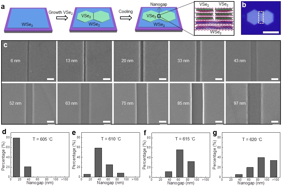 VSe2作为接触电极的双层WSe2短沟道生长调控。