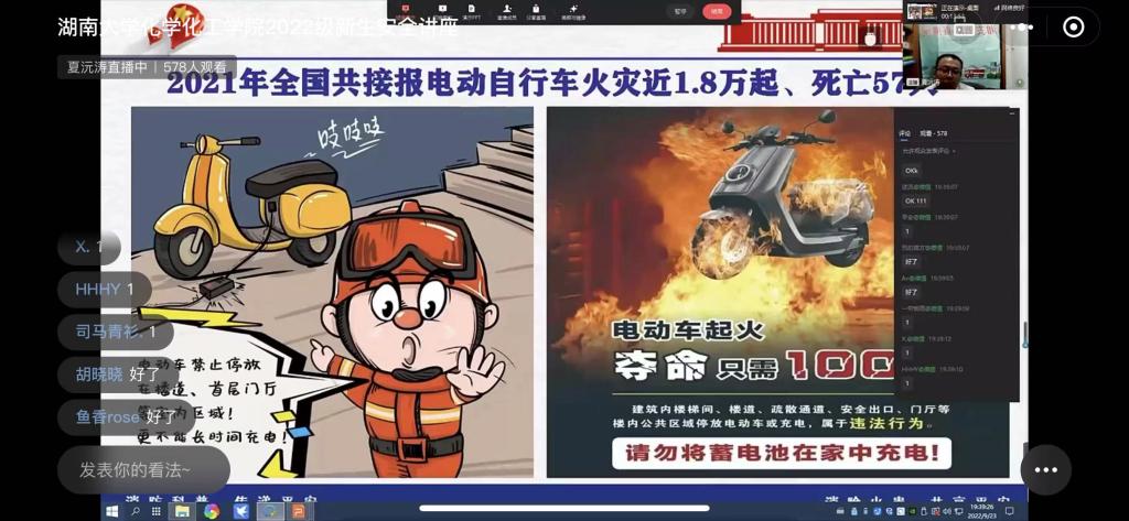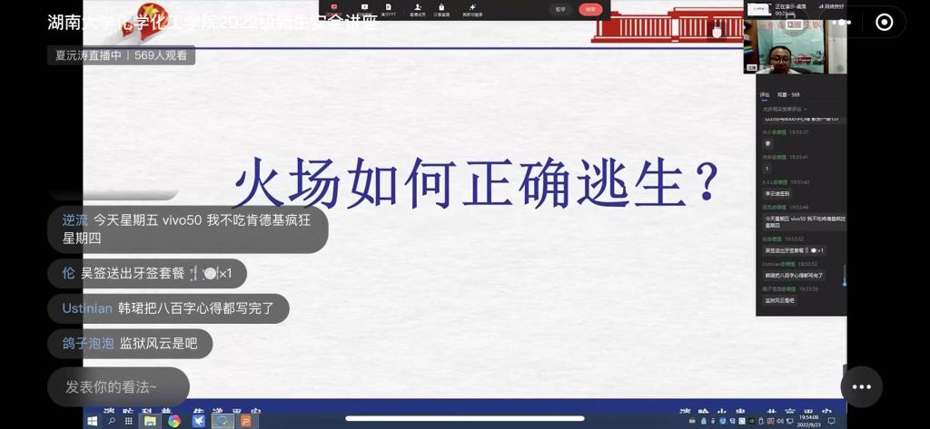 为进一步做好学院消防安全工作,帮助2022级新生树立消防安全防范意识,掌握消防安全知识,正确应对各类突发事故。9月23日,学院以线上直播的方式组织召开2022级新生应急安全讲座,全院研究生和本科生新生600余人参加。