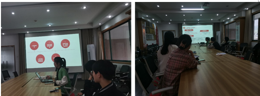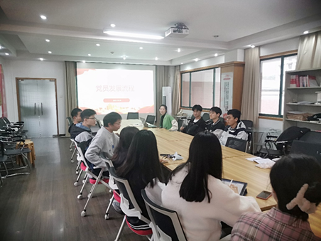 党建服务中心成员一起在新化工楼D区党员活动室集中学习发展党员流程。