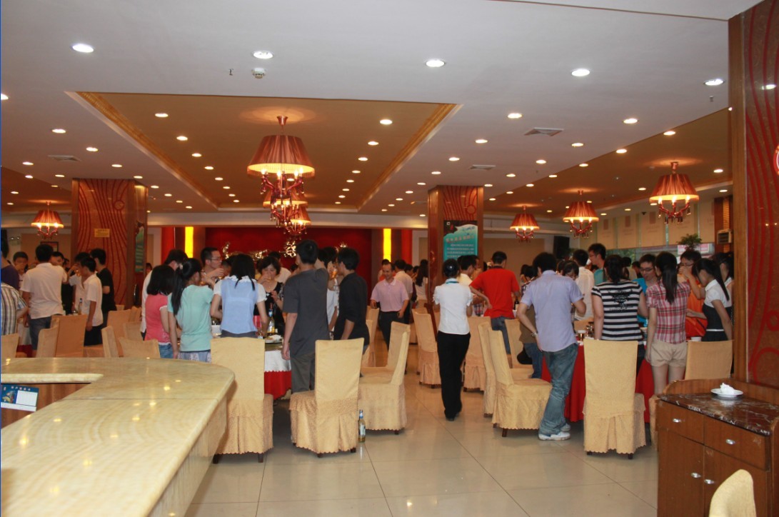 晚上六点整,嘉宾陆续入席,参加聚餐的有校宣传部徐小林副部长、院党委王玉枝书记、蒋健晖院长、副院长旷亚非、尹双凤、党委副书记陈义红、院长助理汪秋安、赵敬哲、崔坤在、部分任课教师、学院各行政部门的工作人员以及各年级辅导员,还有本次聚餐会的主角——2011届全体毕业生。陈义红副书记作为本次聚餐会的主持人,率先祝愿2011届毕业生未来的道路平坦顺利,并建议大家共同举杯,此时碰杯的声音和欢呼声响彻了整个大厅。