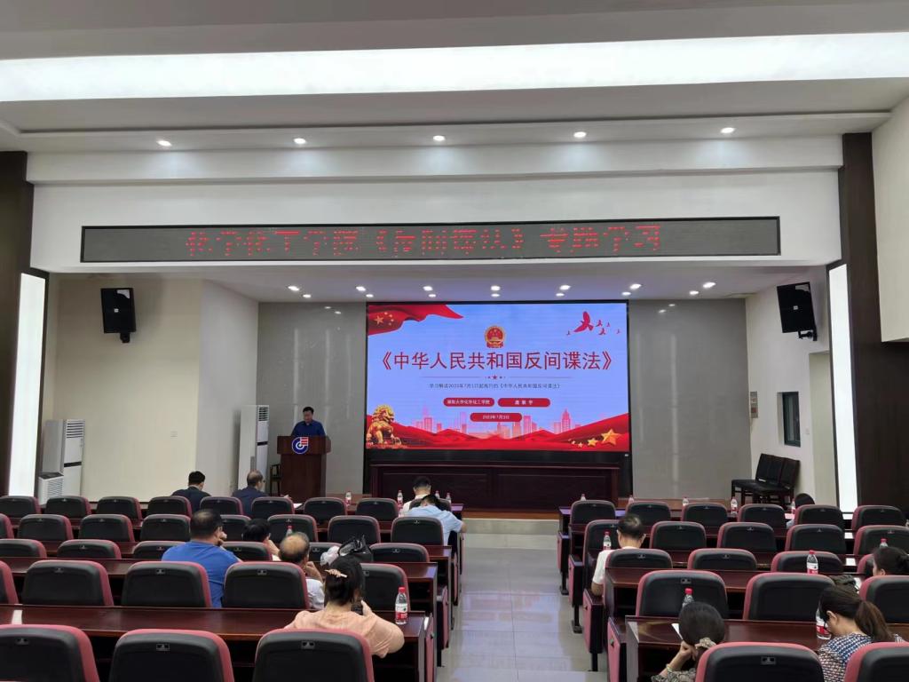 会上,学院副处级组织员庞新宇带领全院教职工从《反间谍法》的修订历程及起草过程,修改《反间谍法》遵循的思路和原则,《反间谍法》修改的主要内容等对《反间谍法》进行了系统深入的学习。