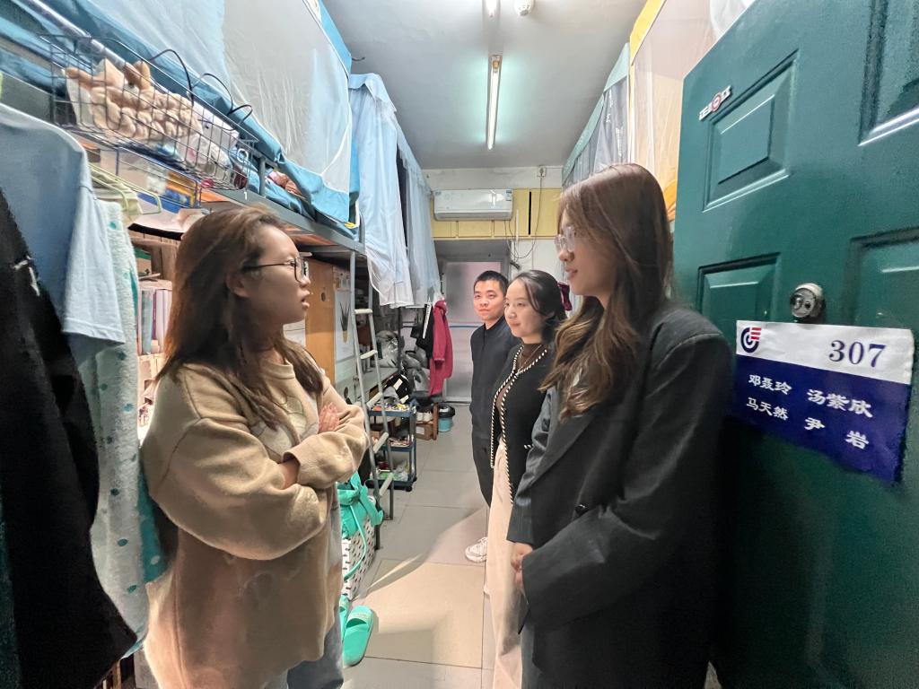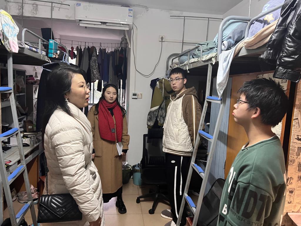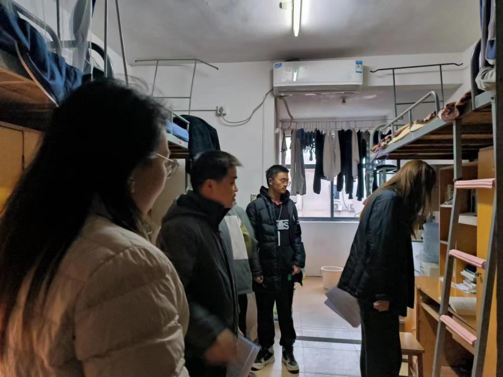 党委副书记李洪玉带队,学工办主任刘卓、分团委书记蒋晓洁及本研辅导员何妮翰、南彬、徐晓宇对学院学生校内外住宿、实验室进行了每周例行检查,将严格管理和教育引导相结合,排查潜在安全隐患,开展安全教育引导工作。