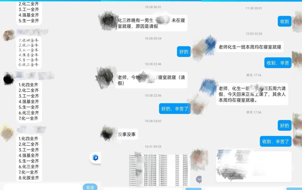 此外,各年级建立了晨晚检报送专项台账、寝风督导制度,细致记录各年级各宿舍的具体情况,学生晚归情况等,进一步加强校园安全管理,加大安全隐患排查力度,确保校园安全无死角。