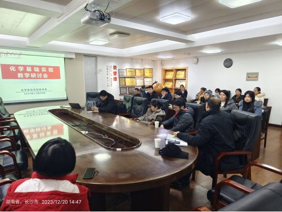 基层教学组织的建设成效,切实提升实验课堂教学效果与实践课程育人能力,化学基础实验教研室于12月20日下午2:30在新化工楼D204召开了2023年秋季学期期末实验教学研讨会。会议由基础分析化学实验课程负责人李昆老师主持,李永军副院长出席并发言,二十余位来自实验中心、化学系和化学生物学系并参与化学基础实验教学工作的教师参与了此次会议,共同针对本学期工作的总结与安排和学科竞赛的规划与实施进行了深入研讨。
