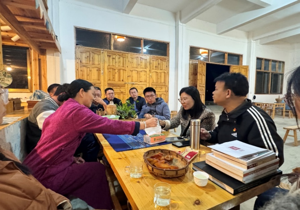 在调研消费扶贫产品时,驻村干部就乡村振兴工作开展情况进行发言,阐述白水洞村各项目未来发展计划。李洪玉表示,学校将继续贯彻新发展理念,持续做好高质量帮扶,以高质量党建引领乡村振兴,科技助农,不断提升乡村振兴帮扶育人实效。